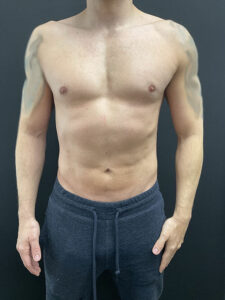 If there is loose skin, a male tummy tuck can be performed. This is slightly different from a female tummy tuck as the muscle separation is not present, and therefore does not need to be tightened. We place the scars low, in the groin crease or pubic hairline, so that men can wear underwear or swimsuit shorts without revealing the scars.